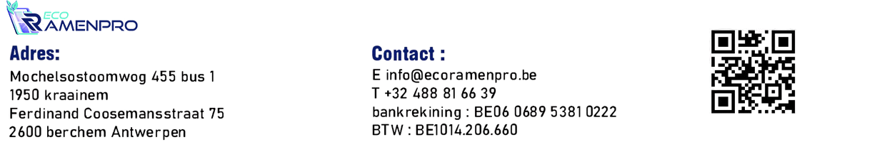 Interesse? Neem snel contact met ons op bij EcoRamenPro voor meer informatie! Of maak nu al een afspraak , voor een eerste kennismaking bij jou thuis, of bij ons, zoals je zelf verkiest